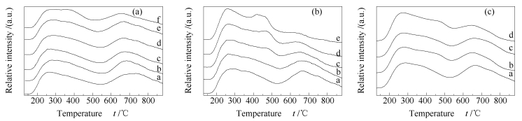 (a): 20Ni-mCu/γ-Al2O3; (b): 20Ni-6Cu-nMo/γ-Al2O3; (c): catalysts from different impregnation sequence