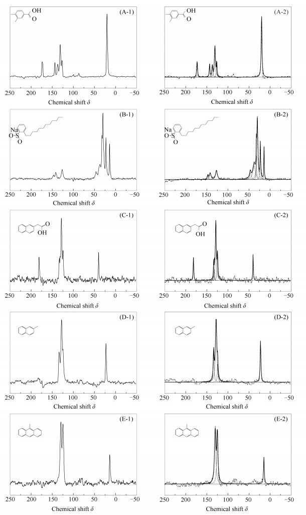 (A): 3, 4-dimethyl benzoic acid; (B): sodium dodecyl benzene sulfonic acid; (C): 2-naphthalene acetic acid; (D): 2-methyl naphthalene; (E): 9-methyl anthracene