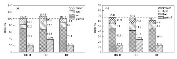 • The effect of mineral matter on pyrolysis and product evolution of oil shale was studied by GC and FT-IR. Hudian oil shale was treated by sequential washing with HCl and HF/HCl. The results show that carbonate has catalytic effect on conversion of organic carbon and hydrogen from Kerogen to shale oil, which is inhibited by silicate. The H/C atomic ratio in shale oil increases in both carbonate-free and silicate-free oil shale. Carbonate enhances gas yield and inhibits oil yield, while silicate is just opposite. The contents of CO2 and H2 decrease but CO increases in both carbonate-free and silicate-free oil shale. Carbonate can inhibit generation of hydrocarbon in gas product while silicate has catalytic effect on it. All the carbonate and silicate can increase the length and degree of branching aliphatic side chains in shale oil and improve aromatization of the solid product from shale.