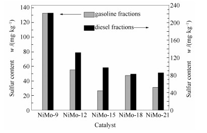 reaction conditiona: t=395℃, p=8MPa, WHSV = 0.6h-1, H2/oil = 800