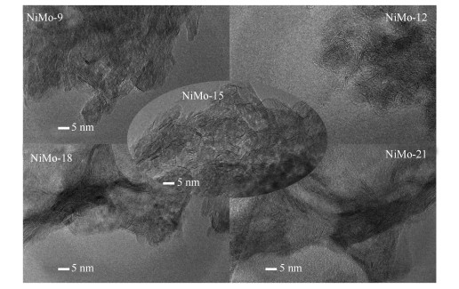 (a): NiMo-9; (b): NiMo-12; (c): NiMo-15; (d): NiMo-18; (e): NiMo-21