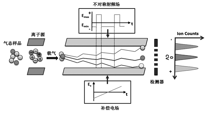 The equipment based on field asymmetric waveform ion mobility spectrometry (FAIMS) chip was established to detect acetone, phenol, cyclohexane and their mixtures successfully. Gas of acetone, phenol and cyclohexane was vapored by trace gas generator. The ratio of air and organic gas was adjusted by the mass flow controller to generate organic gas of various concentrations. The mixture was sent into the chip core, then the signal was adopted and transformed into spectrograph. Organic gas was confirmed and detected by comparing the spectrograph of background with the spectrograph of organic gas. The test results showed there was a relationship in direct proportion between the concentration of organic gas and the signal value. The organics in mixtures could be determined separately by regulating the positive and negative mode of alternating electric field and adjusting the compensation voltage.