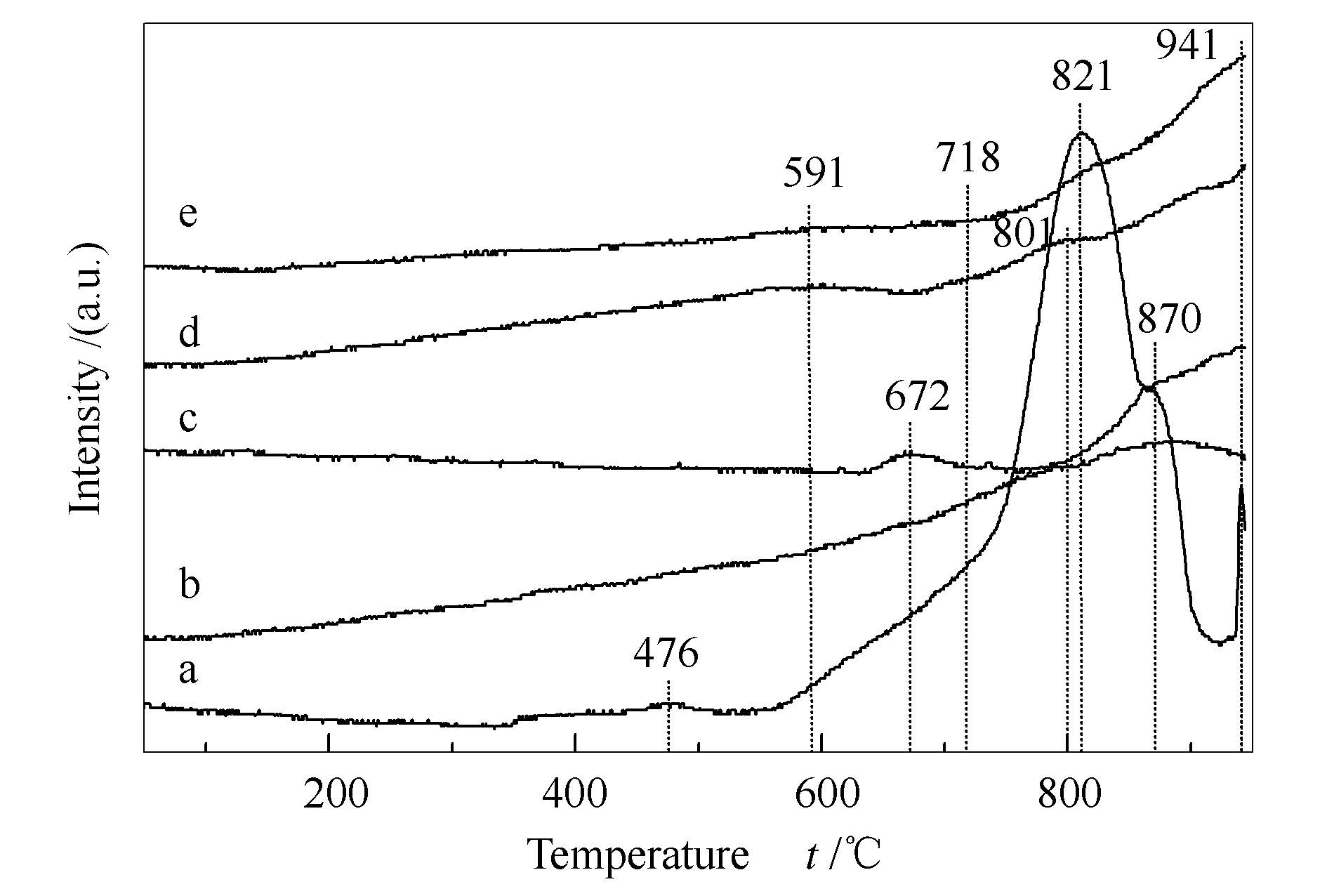 a: LiMn2O4; b: Li/TiO2; c: Mn/TiO2;d: LiMn2O4/TiO2; e: Li-Mn/TiO2