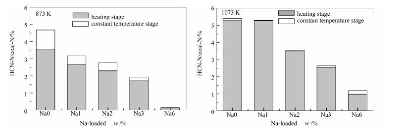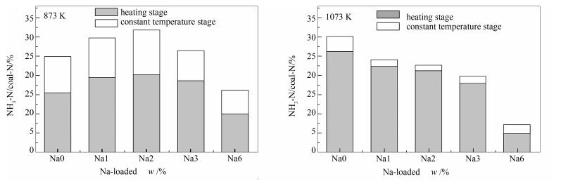 • The impact of Na content on nitrogen transformation during the pyrolysis of Shengli raw coal and the Na-loaded coal in a fixed-bed/fluidized-bed quartz reactor was investigated. The quantification of NH3 and HCN in gas product was carried out using an ultraviolet-visible spectrophotometer while the occurrence modes of nitrogen in the solid chars were detected by X-ray photoelectron spectroscopy (XPS). The results indicate that the transformation of coal-N to NH3 can be catalytically enhanced by certain amount of Na at low temperature. When the final pyrolysis temperature is relatively high, the presence of Na appears to inhibit the formation of NH3. Meanwhile, for any given pyrolysis temperature, the production of HCN will be suppressed by Na. When the pyrolysis temperature is high, the increase of Na content in coal causes the reduction of nitrogen remaining in char and promotes quaternary nitrogen formation, whereas, the effect is negligible at low temperature.