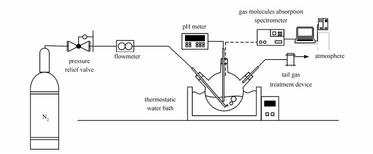 experimental conditions: reaction temperature 55℃, pH value = 5.5, 5mmol/L SO32-, 1.5L/min N2 as balance gas