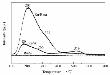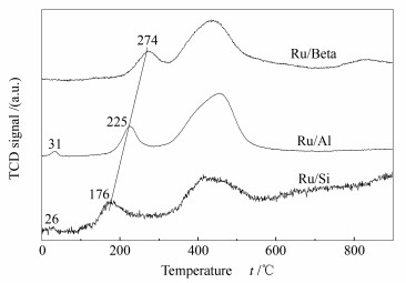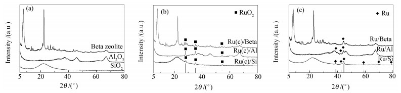(a): Ru/Beta; (b): Ru/Al; (c): Ru/Si