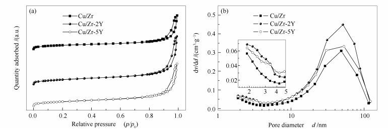 a: Cu/Zr; b: Cu/Zr-2Y; c: Cu/Zr-5Y