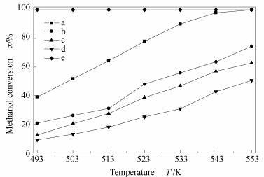 (reaction conditions: n(H2O)/n(MeOH)=1.2:1, GHSV=1760h-1)