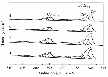 a: Y/Co=0 (Co3O4); b: Y/Co=0.01; c: Y/Co=0.03; d: Y/Co=0.05