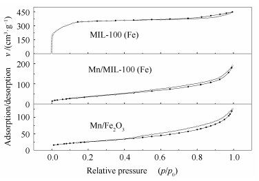 (a): Mn/MIL-100 (Fe) catalyst; (b): Mn/Fe2O3 catalyst