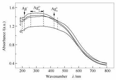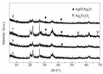 a: Fe/Al-PILC; b: 0.4Ag-Fe/Al-PILC; c: 2.1Ag-Fe/Al-PILC; d: 3.3Ag-Fe/Al-PILC