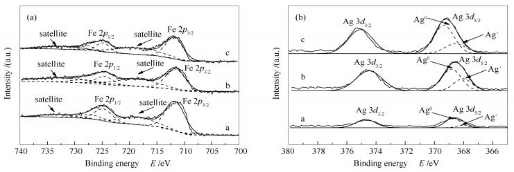 a: 0.4Ag-Fe/Al-PILC; b: 2.1Ag-Fe/Al-PILC; c: 3.3Ag-Fe/Al-PILC