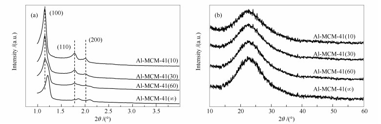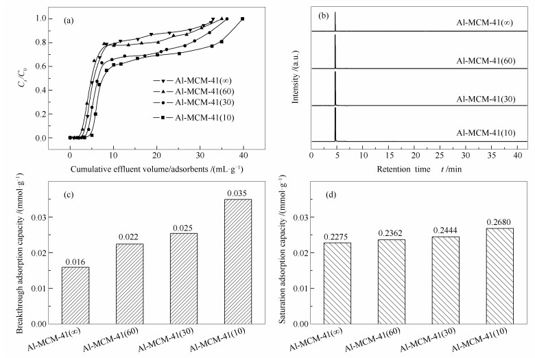 (a): Al-MCM-41(∞); (b): Al-MCM-41(60); (c): Al-MCM-41(30); (d): Al-MCM-41(10)