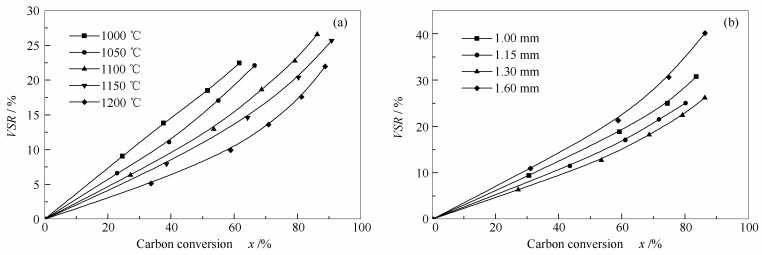 • High temperature stage microscope was applied to observe morphology evolution of flaky char particles during gasification. Raman spectroscopy was used to analyze crystalline structures of gasification semicoke. Effect of gasification temperature (1000-1200℃) and initial equivalent diameter (1.00-1.60 mm) on morphology and structure evolution were examined. The results show that particle shrinkage in later stage of gasification is more intense than that in early stage. Within tested gasification temperature, the particle ASR (area shrinkage ratio) and VSR (volumetric shrinkage ratio) decrease with increasing temperature. The initial particle size of char has a significant effect on particle shrinkage. At 1100℃ the shrinkage trend of particle marks a turning point at initial diameter of 1.30 mm. The variation of char apparent density is dominated by carbon consumption. When the carbon conversion reaches 80%, the apparent density ratio linearly decreases below 0.4. At the same gasification temperature, with increasing carbon conversion the graphitization of char reduces first and then increases, while the amorphous carbon is opposite.