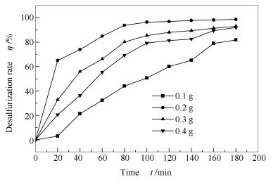5 mL model oil, 60 ℃, 0.2 g C9H10O2- 0.5ZnCl2/Al2O3, t=180 min