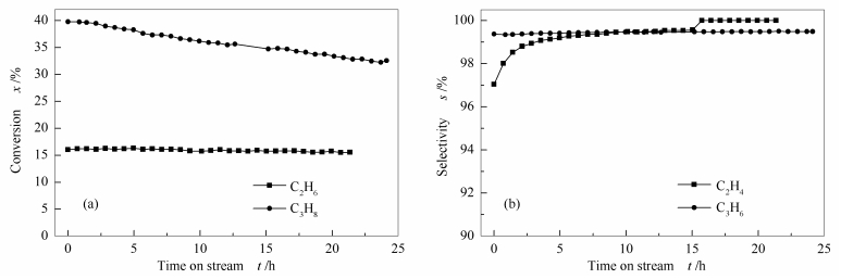 (a): C2H6/C3H8 conversion; (b): C2H4/C3H6 selectivity