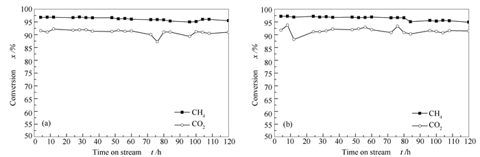 (a): HN; (b): HA reaction conditions: temperature=800℃,GHSV=10000 mL/(g·h), CH4/CO2(molar ratio)=1.0