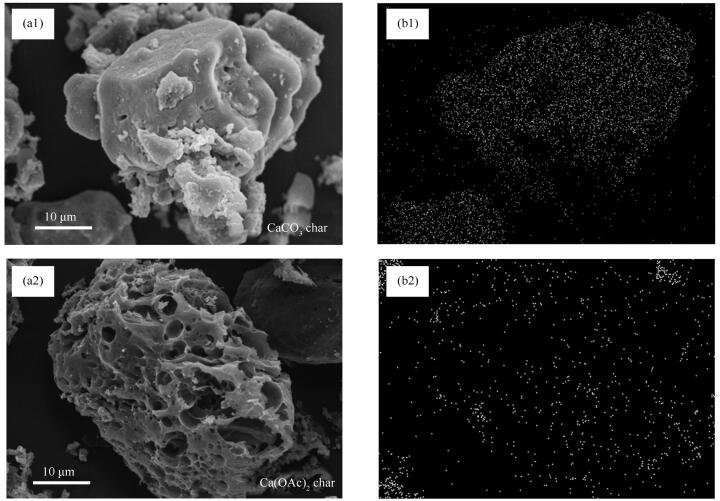 (a): surface morphology of char; (b): Ca distribution