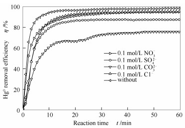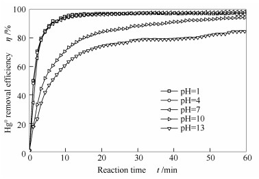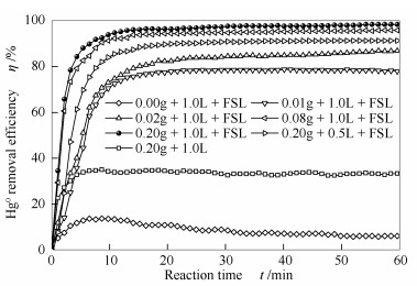 conditions: Hg0=55.0 μ g/m3, t=35 ℃, initial pH=7, FSL radiation intensity=11 W/L