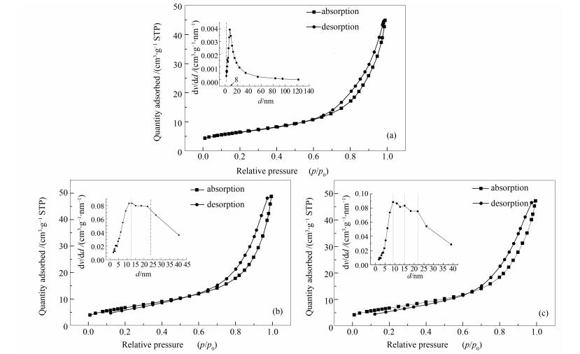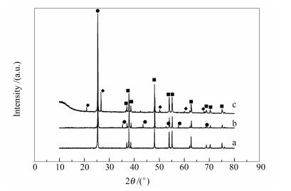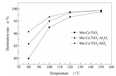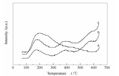 a: Mn-Ce/TiO2; b: Mn-Ce/TiO2-SiO2; c: Mn-Ce/TiO2-Al2O3