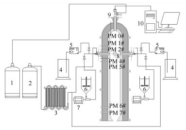 1: Ar tank; 2: O2 tank; 3: evaporator; 4: diesel tank; 5: gear pump; 6: coal-water slurry tank; 7: screw pump; 8: burner 3# and burner 4#; 9: camera; 10: computer