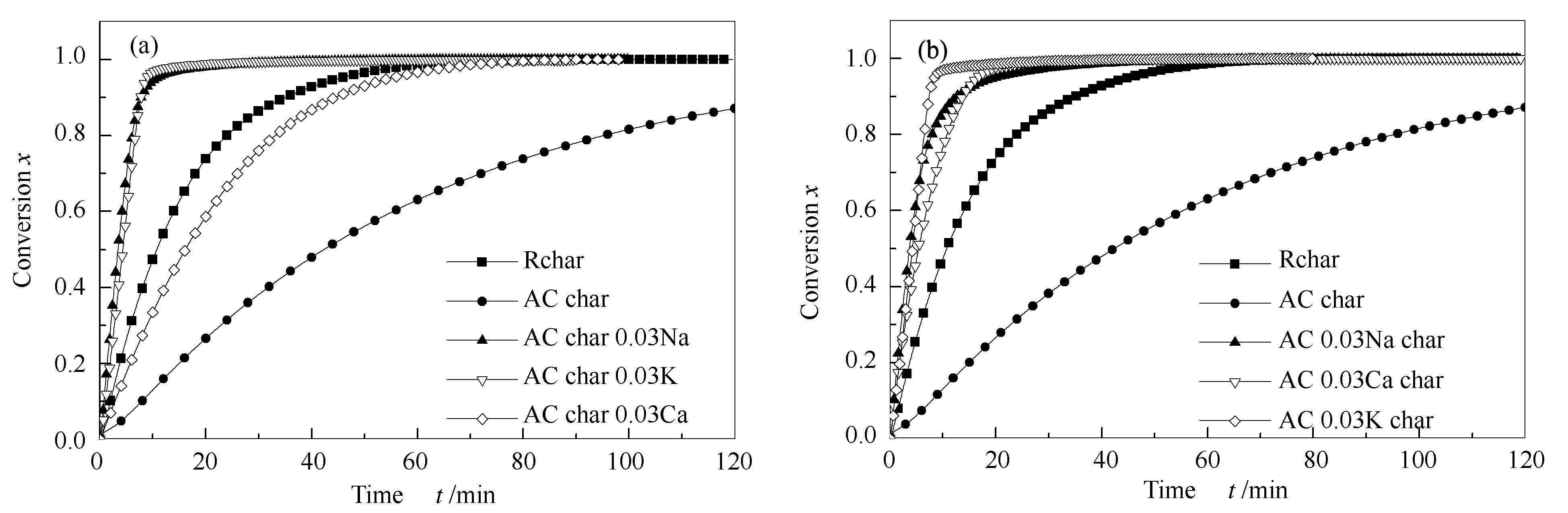 (a): chars pyrolyzed before loading catalyst; (b): chars pyrolyzed after loading catalyst