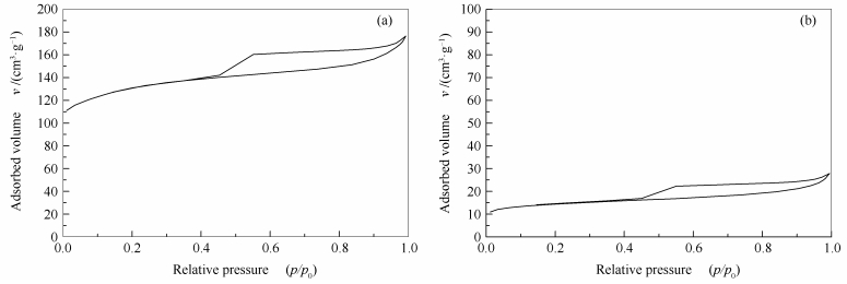 (a): N2 adsorption and desorption isotherms of HUSY@MFI composite zeolite(calcined); (b): N2 adsorption and desorption isotherms of HUSY@MFI composite zeolite(non-calcined)