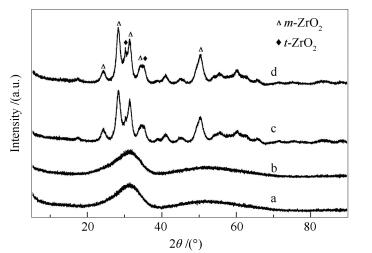 a: 3%TiO2-ZrO2-350℃; b: 3%TiO2-ZrO2-400℃; c: 3%TiO2-ZrO2-450℃; d: 3%TiO2-ZrO2-500℃