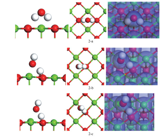 (a): clean CaO surface; (b):-H2O surface; (c)-H surface