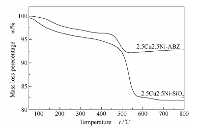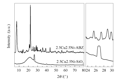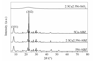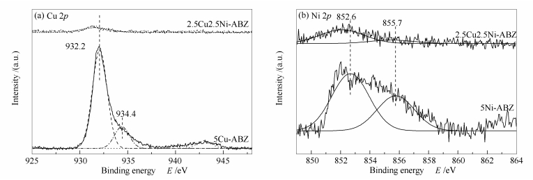 (a): 2.5Cu2.5Ni-ABZ; (b): 2.5Cu2.5Ni-SiO2; (c): 5Cu-ABZ; (d): 5Ni-ABZ