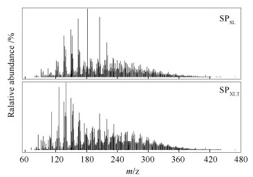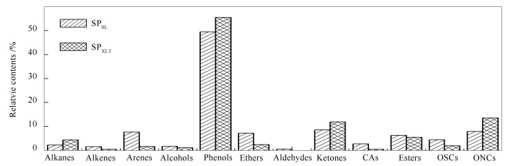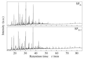 • Thermal dissolution behaviors of Shengli (SL) and Xiaolongtan (XLT) lignite in methanol were investigated. The composition and structural characteristics of soluble portions (SPs) obtained at 320 ℃ were characterized with Fourier transform infrared spectroscopy, gas chromatograph /mass spectrometer (GC/MS) and atmospheric solid analysis probe/time of flight mass spectrometer (ASAP/TOF-MS). For the two lignites, the yield of SPs increase with temperature increasing, while the yield of SPs from XLT (SPXLT) is obvious higher than that from SL (SPSL) above 240 ℃. GC/MS analysis results show that compounds in the SPs are dominated in oxygen-containing organic species, especially the relative content of phenols is higher than 49%. The relative contents of alkenes, arenes, ethers, carboxylic acids, esters, organosulfur compounds (OSCs) in SPSL are higher, while the relative contents of alkanes, phenols, ketones and organonitrogen compounds in SPSL are lower than those in SPXLT. Additionally, the OSCs in SPSL and SPXLT are mainly composed of thiophenes and mercaptan, respectively. Many compounds with high polarity and low volatility which could not be identified by GC/MS were identified using ASAP/TOF-MS. The relative contents of CHO and CHS class species in SPSL are higher, but the relative contents of CHN, CHNO, CHOS, CHNS and CHNOS in SPSL are lower than those in SPXLT. The carbon number and double bond equivalent (DBE) of the compounds in SPSL and SPXLT mainly distribute in 0-10 and 3-15, respectively, while the distribution of carbon number and DBE of the compound in SPXLT are more concentrated than those in SPSL.