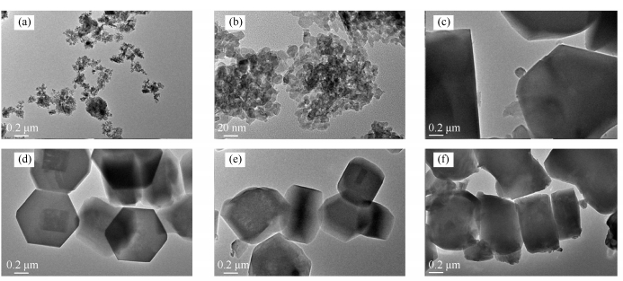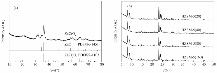 (a) and (b): ZnCrOx; (c): HZSM-5(20); (d): HZSM-5(40); (e): HZSM-5(80); (f): HZSM-5(160)