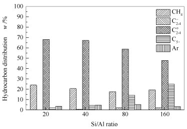 reaction conditions: 0.5 g ZnCrOx/HZSM-5(160), H2/CO = 2(volume ratio), 400 ℃, 2.0 MPa, GHSV= 3600 mL/(h·gcat), TOS= 8 h