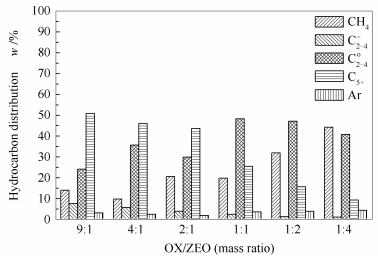 reaction conditions: 0.5 g ZnCrOx/HZSM-5 (mass ratio=1:1), H2/CO(volume ratio)=2, 400 ℃, 2.0 MPa, GHSV=3600 mL/(h·gcat), TOS=8 h