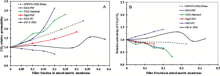 • Efficient, green and low-energy CO2 capture technology is the key to solving the problem of energy gas purification and greenhouse gas emission reduction. Membrane separation technology has potential prospects for development because of its high efficiency, energy saving, low carbon and other characteristics in the field of CO2 capture. At present, the study of CO2 separation membrane mainly focuses on the filler in mixed matrix membrane (MMMs), and the "trade-off" effect between membrane permeability and selectivity is controlled by adjusting the filler. MMMs separation technology show a good application prospects in the field of gas separation. In recent years, researchers have found that the filler is usually a key factor affecting separation performance of the MMMs, and the use of different fillers can improve the gas separation performance of the mixed matrix membrane. This paper summarizes the filler that has been developed at present, so as to provide a reference for the design and development of new MMMs for CO2 separation.