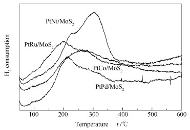 • Nanosheets MoS2 with only 6 layers have been successfully synthesized by hydrothermal method and used as support to prepare a series of Pt and PtM (M=Ru, Pd, Co and Ni) bimetallic catalysts for low temperature aqueous-phase reforming of methanol (APRM) to produce hydrogen. Among those catalysts, PtCo supported on MoS2 nanosheets catalyst exhibited the best performance, and its turnover frequency (TOF) of H2 formation reached 37142 h-1 at 220℃. The N2 adsorption-desorption, TEM, H2-TPR and XPS results showed that PtCo/MoS2 performed the highest reduction degree, and the strong electronic interaction between Pt and MoS2 enhanced the adsorption and activation of methanol on the electron-deficient Pt, thus promoted the methanol reforming.