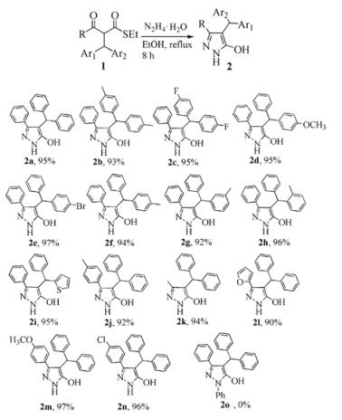 Citation: Ding Xuguang, Yu Haifeng, Zhao Hui, Yang Yong. Cyclization of α-Diaryl methyl-β-ketothioesters and Hydrazine: Synthesis of Functionalized 5-Hydroxy Pyrazolyl-Containing Triarylmethanes[J]. Chemistry, ;2017, 80(12): 1152-1155, 1127. shu