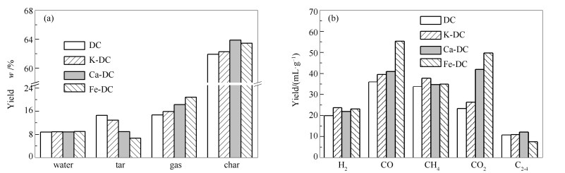 Effects of K+, Ca2+ and Fe3+ on the distribution, structure and quality of the pyrolysis products of Hefeng coal