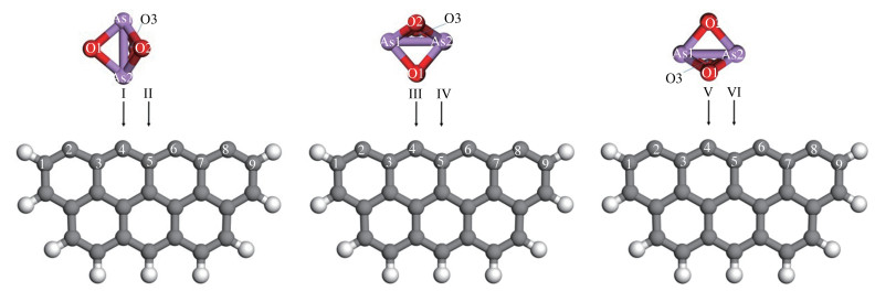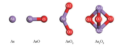 (the purple balls denote arsenic, the red balls denote oxygen, and the same below)