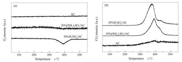 • A series of SO42-/AC bifunctional catalysts, in which SO42- and AC acted as the acid sites and redox sites, respectively, are prepared by impregnation with H2SO4 and (NH4)2SO4 as precursors and active carbon as support; their catalytic performance in the direct oxidation of dimethyl ether (DME) to polyoxymethylene dimethyl ethers (DMMx) was investigated. The results show that the catalytic performance of SO42-/AC catalysts is significantly related to the precursor used. Over the 40%H2SO4/AC catalyst, the selectivity to DMM1-2 reaches 59.7%, with a DME conversion of 8.4%; in addition, there is no COx observed in the products. However, a large amount of COx by-product is formed over the 40%(NH4)2SO4/AC catalyst; meanwhile, the selectivity to DMM is only 2.7% and no DMM2 is formed. The XRD, N2 sorption, NH3-TPD and O2-TPD-MS characterization results illustrate that the suitable amount of weak acid sites and redox sites of the H2SO4/AC catalyst is beneficial to the formation of long chain DMMx from DME oxidation. The modification of AC with SO42- promotes the activation of O2 over the surface of AC support, whereas the introduction of H2SO4 improves the weak acid sites of the catalyst. On the contrary, the number of medium-strong acid sites of the catalyst is increased by modifying AC with (NH4)2SO4.