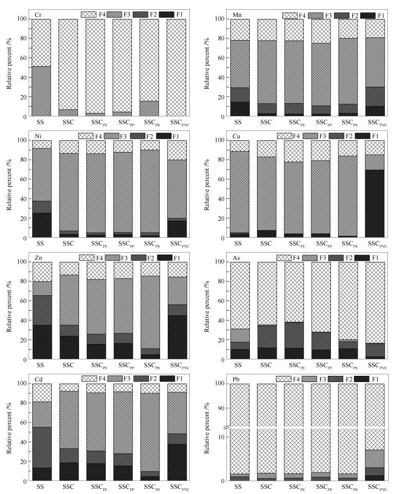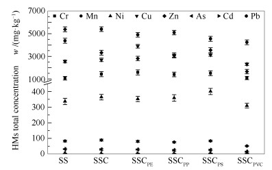 Effect of co-pyrolysis of different plastics with sewage sludge on heavy metals in the biochar
