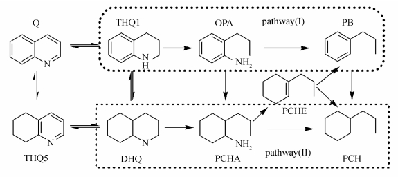 JIAN M, PRINS R. Mechanism of the hydrodenitrogenation of quinoline over NiMo(P)/Al2O3 catalysts[J]. J Catal, 1998,113(1):111-123.