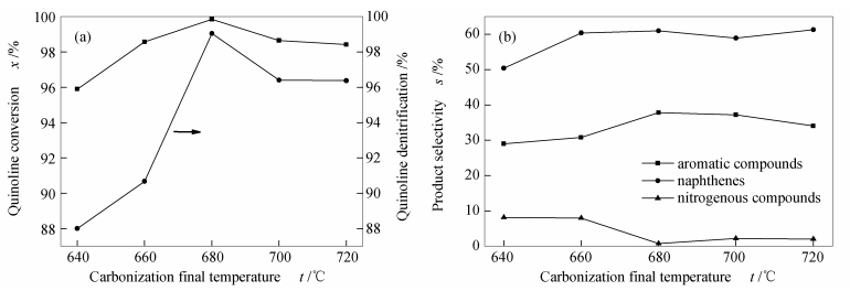 Effect of final carbonization temperature on catalytic performance of β-Mo2C in quinoline hydrodenitrogenation