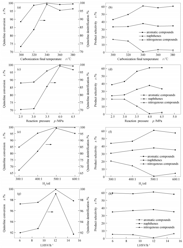 SCHLATTER J C, OYAMA S T, METCALFE J E. Catalytic behavior of selected transition metal carbides, nitrides, and borides in the hydrodenitrogenation of quinoline[J]. Ind Eng Chem Res, 1988,27(9):1648-1653. doi: 10.1021/ie00081a014