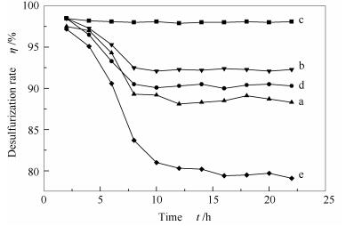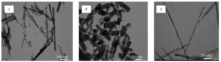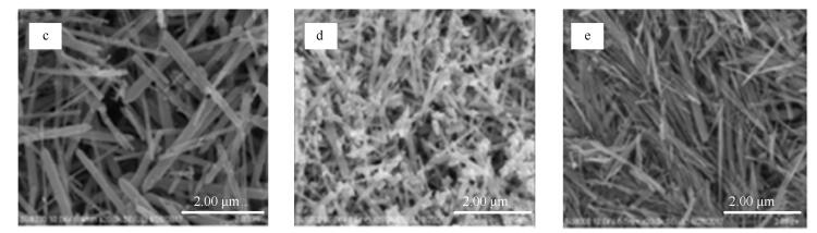 a, b, c: composite NiO-ZnO nanowires adsorbent; d: supported NiO/ZnO nanowires adsorbent; e: pure ZnO nanowires adsorbent