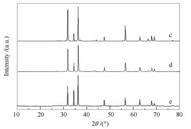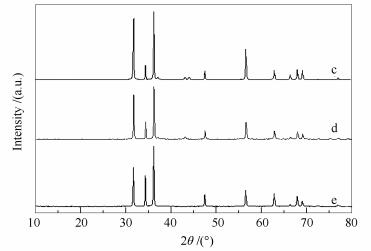 c: composite NiO-ZnO nanowires adsorbent; d: supported NiO/ZnO nanowires adsorbent; e: pure ZnO nanowires adsorbent