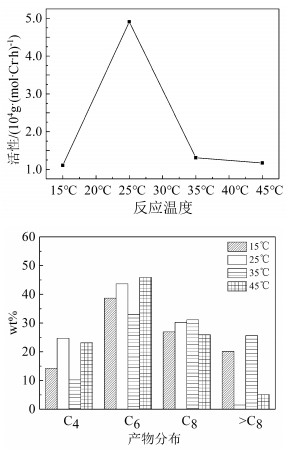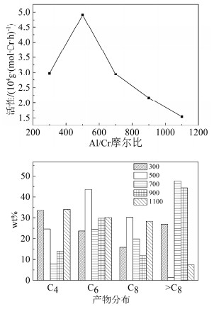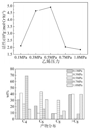 A novel dendritic pyridineimine ligand DPI was synthesized using 1.0G dendritic polyamide-amine and pyridine dialdehyde as the raw materials, and the dendritic pyridineimine chromium (DPI-Cr) catalyst was synthesized with chromium chloride hexahydrate complex as reagent. The structure of the DPI-Cr catalyst was fully characterized by FT-IR, UV-Vis, MS and element analysis. The effect of solvent type, co-catalyst type, reaction temperature, reaction pressure and Al/Cr molar ratio on the catalytic performance in ethylene oligomerization was detected in detail. The results showed that the DPI-Cr catalyst displays better catalytic activity and olefine selectivity. Under the optimal reaction conditions, the catalytic activity could reach up to 4.91×104 g/(molCr·h), and the selectivity of C6 and C8 was 73.90%.