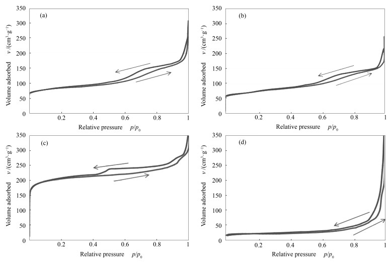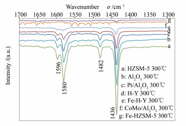 (a): HZSM-5; (b): Fe-HZSM-5; (c): H-Y; (d): γ-Al2O3