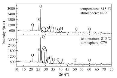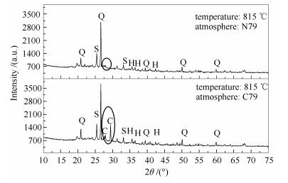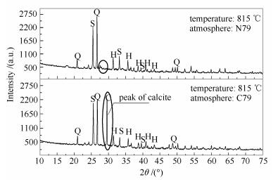 Q: quartz-SiO2; S: anhydrite-CaSO4; H: hematite-Fe2O3; C: calcite-CaCO3