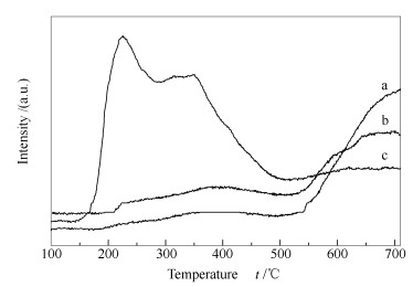 a: SBA-15; b: Hβ/Al-SBA-15; c: Hβ